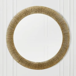 Must be seen in person…or just trust us, this mirror is a show-stopper. Featuring a series of extruding disks, it is loaded with visual texture and intriguing dimension.