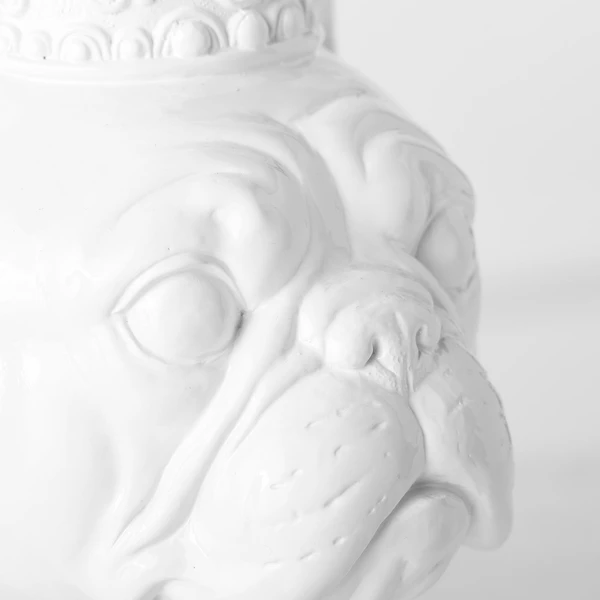 A bold addition to your collection, this regal Frenchie is intricately detailed and finished in white.