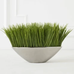 Z Gallerieās Faux Grass in a Silver Pot brings the look of fresh greenery to a room with a stylish contemporary flair. A dense tuft of deep green artificial grass is planted in a chic elongated shiny silver pot to create a sleek, minimalist modern display.