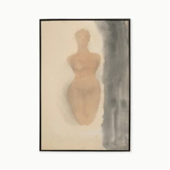 Female Torso is a gallery wrapped natural linen canvas set in an espresso finish floater frame.