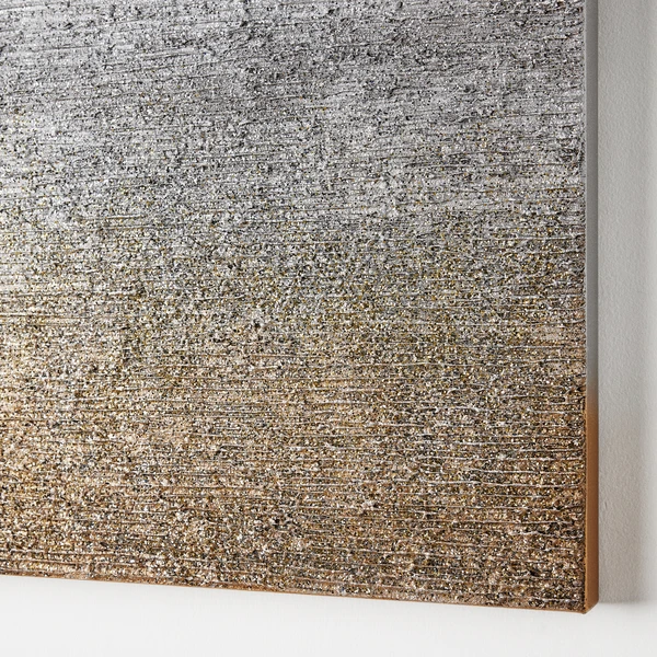 Golden Cliff is a 100% hand-painted canvas with hand-applied glitter embellishment.
