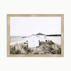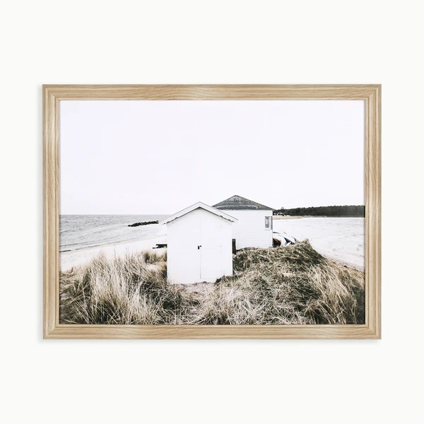 Ocean View 2 is a framed graphic under glass with a light blonde angled profile frame. 1 of 2 is a series.