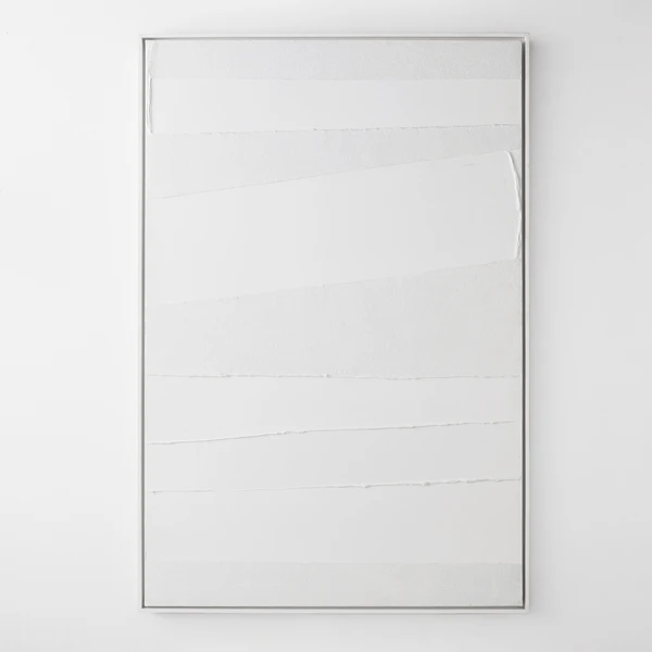 • Set in a white floater frame.
