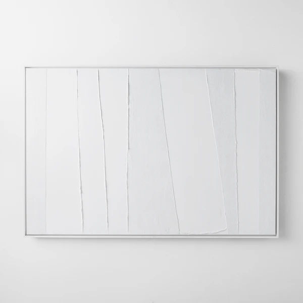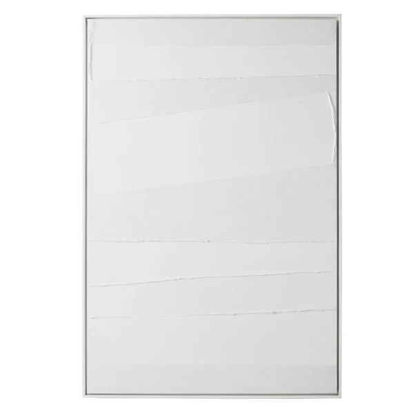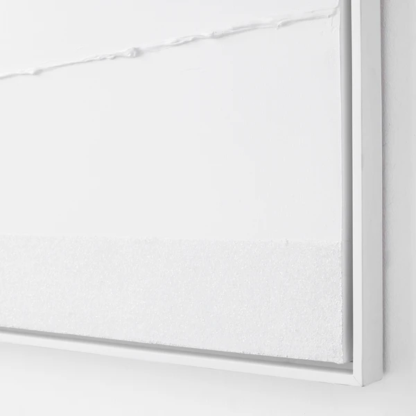 Artist Savannah Yanni makes a monochromatic statement with her Power Power Series. This piece is the white on white choice, which is 100% hand painted on canvas with glitter embellishments. Set in a white floater frame, this is 1 of a series of 2.