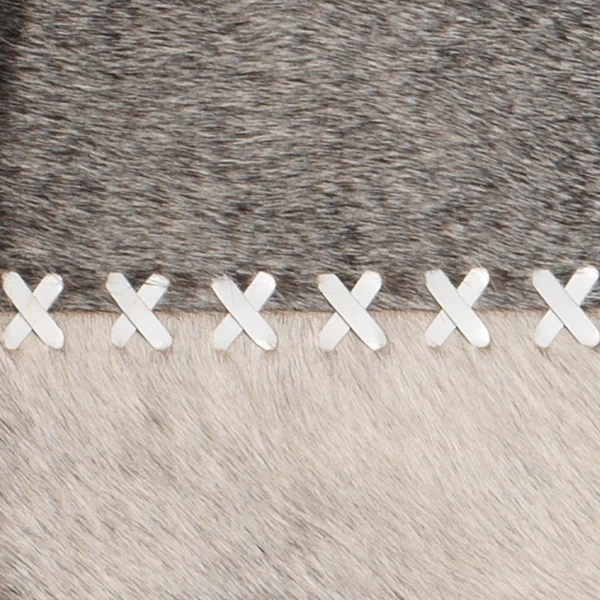 Simple yet impactful, this mirrorās round frame is covered in luxe grey hair-on hide with white leather whip-stitched accents.