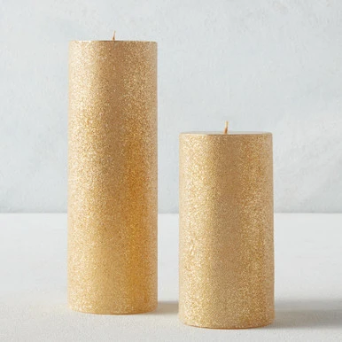 Shimmer Beaded Pillar Candle – Champagne