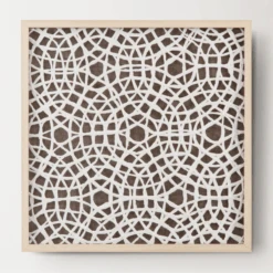 Our Stowe Wall Decor is a shadow box accentuated with a rice paper-like brown mat and a circular radiating pattern of woven white rattan with a natural blonde molding. This piece of art is hand painted by a skilled artist lending itself to a unique technique and will vary slightly.