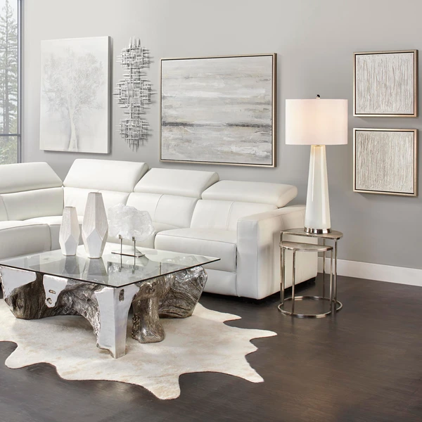 Bold brushstrokes in a tonal palette add an incredible element of texture to this pair of original paintings from artist BJ Synn. Painted on canvas, each piece is displayed in a champagne-silver floater frame.