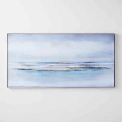 Looking for peace and quiet? Create your calm with artwork that helps you find it. Sunlight Mist will promote tranquility in any space. Set in a natural wood frame, this piece is produced using giclee on canvas with a hand-applied encaustic gel finish applied horizontally.