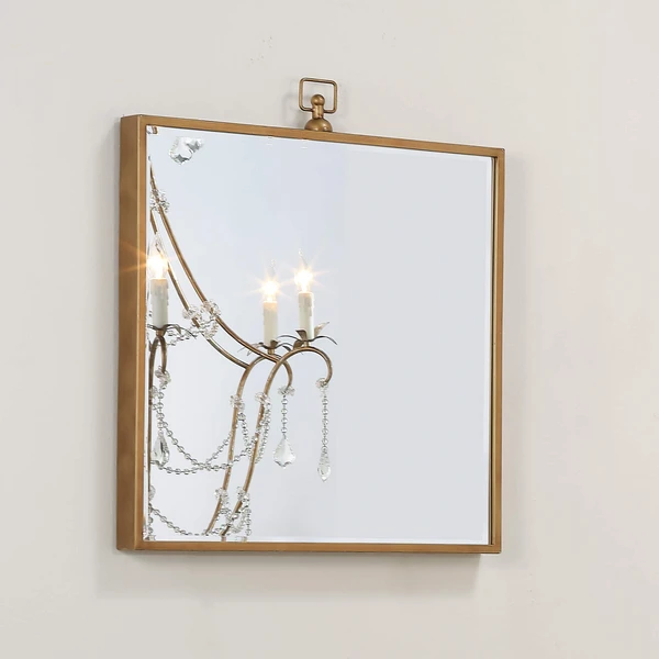 A modern take on an antique-inspired silhouette, this mirror will bring charm to a variety of dƩcor styles. Featuring glass surrounded by a slim metal frame hand-finished in antique brass. Mounted above a vanity, sideboard or dresser, its squared shape will open-up your view and make your space feel bigger.